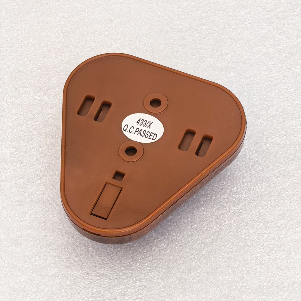 This is 500 meters transmitter. It works with 999 channel receivers, with learning code technology. This kind of transmitter can be put on the table or stick on the wall. When the customers need service, he/she just press the button, the receiver will receive a RF signal and know which table or room needs service.The new design makes it easy to change the battery.